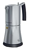 Cafetière électrique italienne Moka WK. Enroulement du cordon. Hauteur : 24 cm. Capacité : 0.3 L (6 tasses café ou espresso). Puissance : 365 W. Couleur : inox mat.